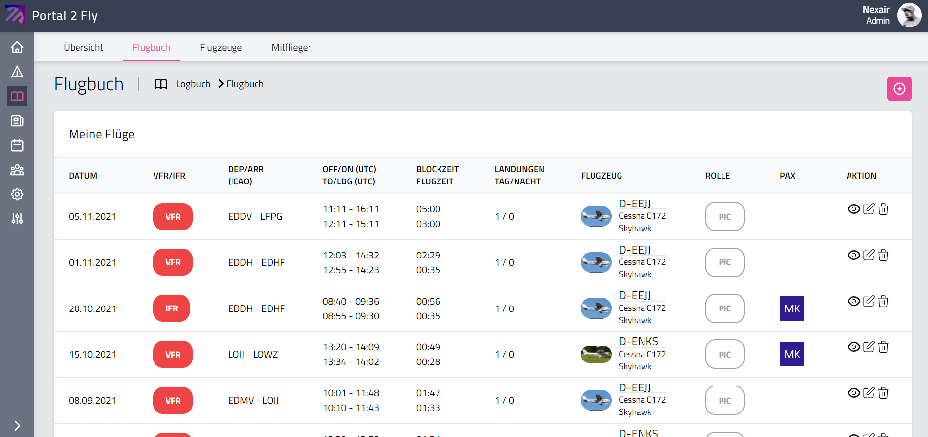 Führen Sie Ihr eigenes Flugbuch, verwalten ihre Flüge, legen sie weitere Flugzeuge an und dokumentieren ihre Mitflieger. Detaillierte Statistiken zeigen Ihnen ihre Aktivitäten und die Nutzung von Flugzeugtypen etc...