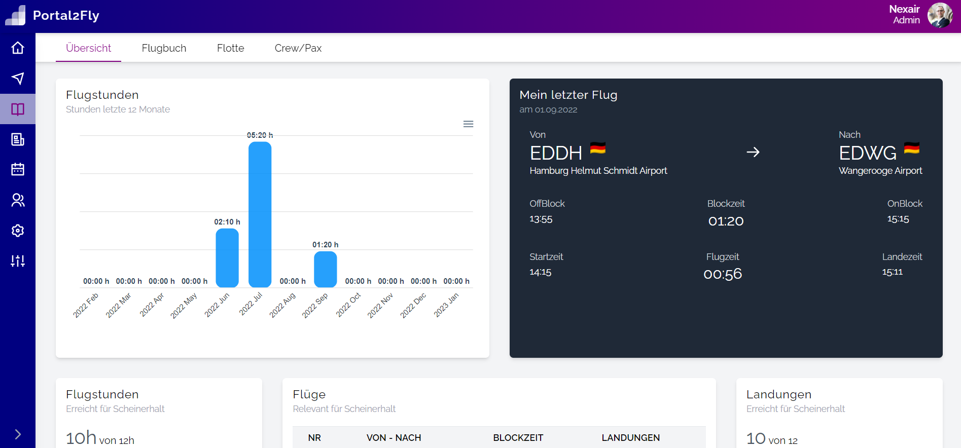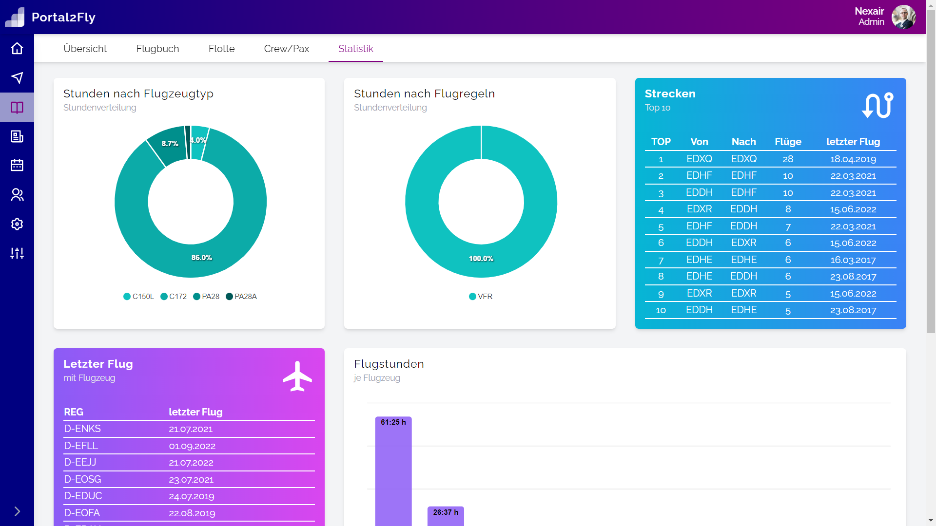 <p>Wie im letzten Beitrag bereits angedeutet soll es zum Flugbuch zahlreiche Auswertungsmöglichkeiten geben. Hier hat es nun erste Fortschritte gegeben. Auf Basis der Flüge im Flugbuch lassen sich auf der Seite "Statistik" nun die Flugstunden bzw. Blockzeit für jedes Flugzeug ablesen oder die meißtgeflogene Strecke ermitteln. Auch die Aufteilung der Flug- bzw. Blockzeiten auf [...]
